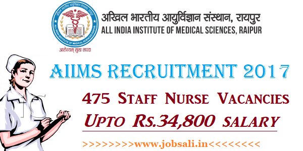 All India Institute of Medical Science – AIIMS Recruitment notification has been issued for 75 posts of Staff Nurse Grade I (Nursing Sisters) (OBC – 20, SC – 11, ST – 05 and UR/General – 39) and 400 posts of Staff Nurse Grade II (Sister Grade II) (OBC – 106, SC – 60, ST – 29, and UR/General – 205). Candidates those who have completed B.Sc Nursing or any other equivalent qualification can apply for this AIIMS Raipur Staff Nurse Recruitment 2017. Those who are willing to apply for this AIIMS Raipur Vacancy 2017 have to apply online before 31st July 2017.